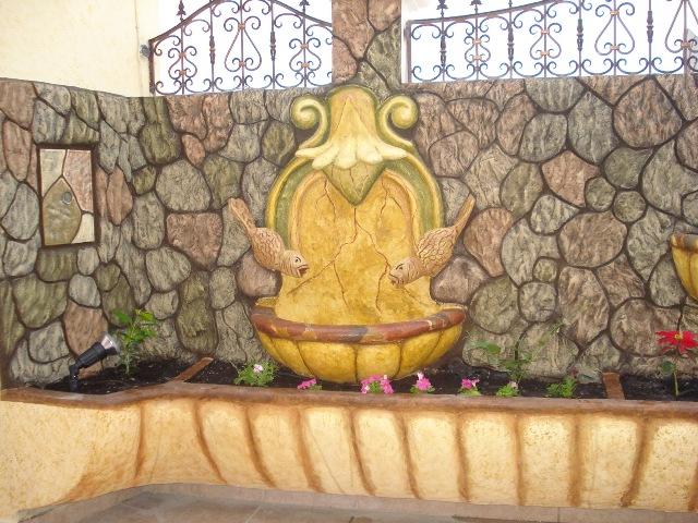 Out door garden comfortable seating and service table.