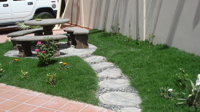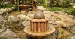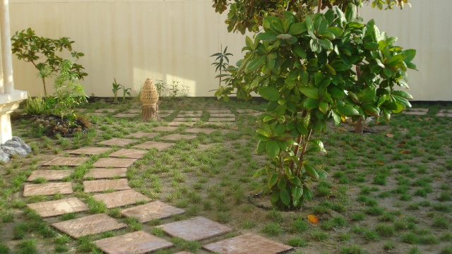 Dry walkways reaching all points of the garden. Bridges over the garden lagoon.